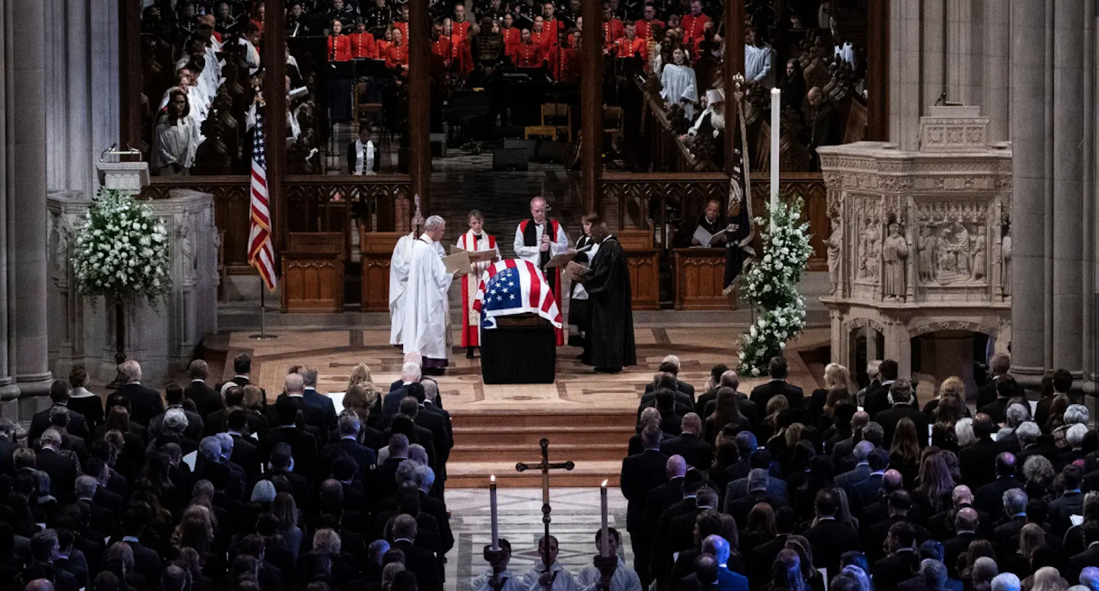 All five living U.S. presidents, Biden, Trump, Obama, Clinton, and Bush, were in attendance. Vice President Kamala Harris, Vice President-elect JD Vance, and former Vice Presidents Dan Quayle, Al Gore and Mike Pence were also present. President-elect Donald Trump and his wife paid their respects on Wednesday.